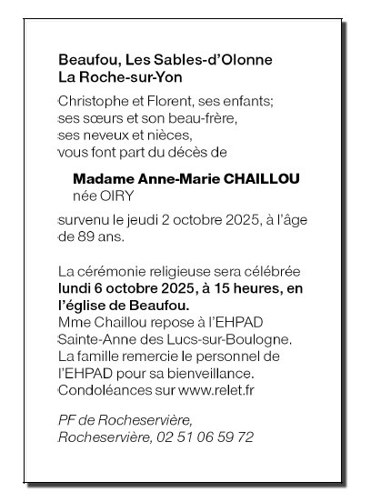 Madame Anne-Marie CHAILLOU née OIRY