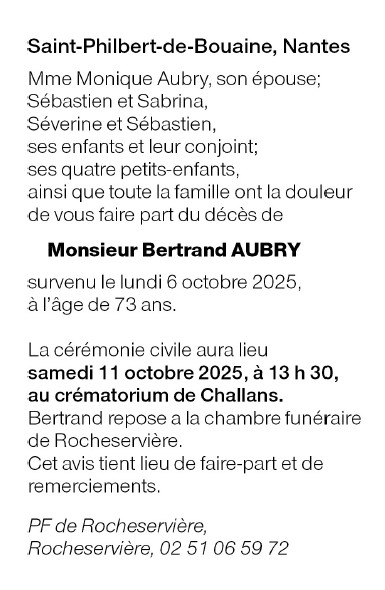 Décédé à Saint-Philbert-de-Bouaine (85660, France) le lundi 6 octobre 2025 à l'âge de 73 ans