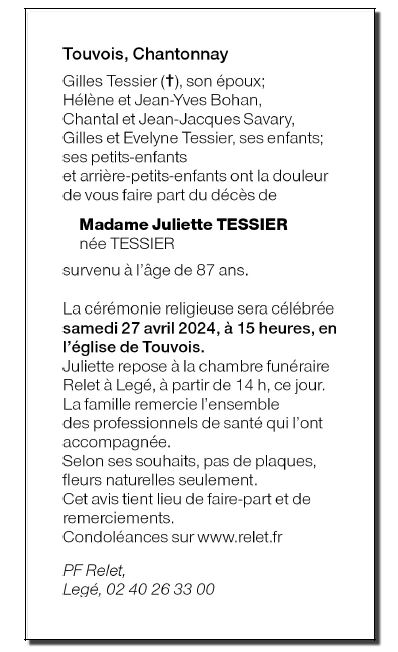 Madame Juliette TESSIER née TESSIER