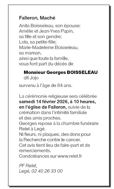 Décédé à Falleron (85670, France) le mercredi 11 février 2026 à l'âge de 64 ans