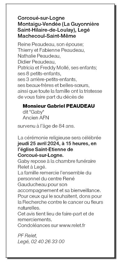 Epoux de Madame Reine PEAUDEAU