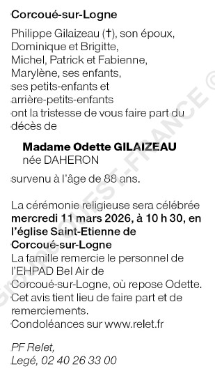 Madame Odette GILAIZEAU née DAHERON