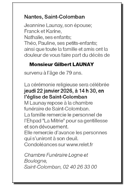 Décédé à Nantes (44100, France) le samedi 17 janvier 2026 à l'âge de 79 ans
