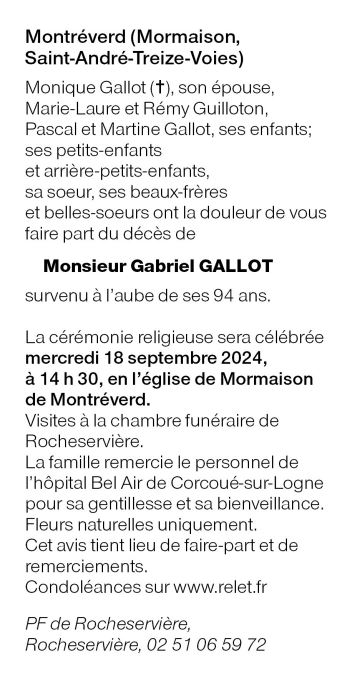 Décédé à Corcoué-sur-Logne (44650, France) le dimanche 15 septembre 2024 à l'âge de 93 ans