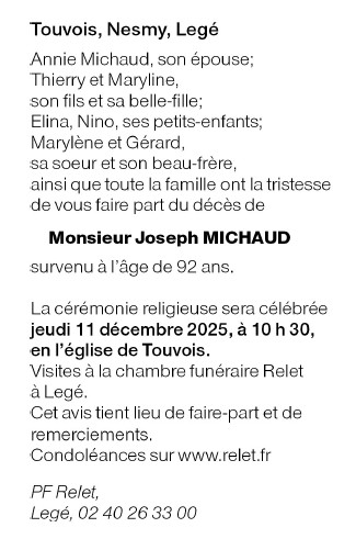Décédé à Legé (44650, France) le dimanche 7 décembre 2025 à l'âge de 92 ans