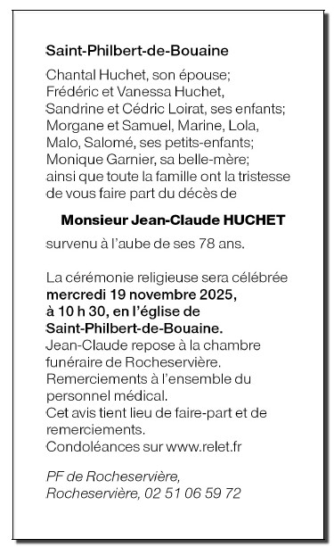 Décédé à Saint-Philbert-de-Bouaine (85660, France) le dimanche 16 novembre 2025 à l'âge de 77 ans