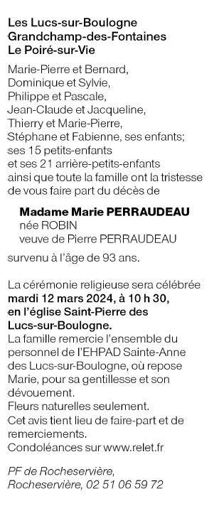Veuve de Monsieur Pierre PERRAUDEAU