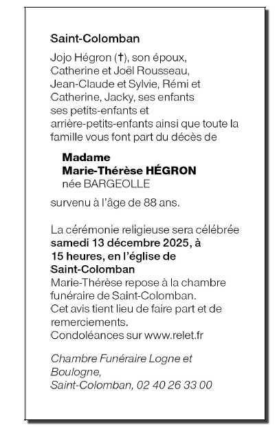 Madame Marie-Thérèse HEGRON née BARGEOLLE