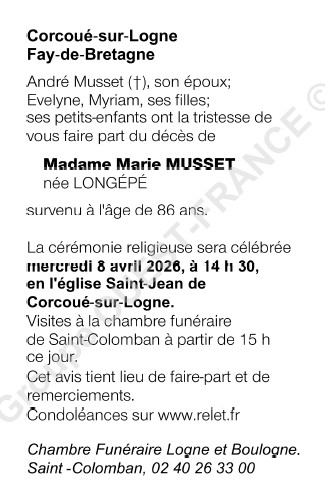 Décédée à Nantes (44000, France) le lundi 6 avril 2026 à l'âge de 86 ans