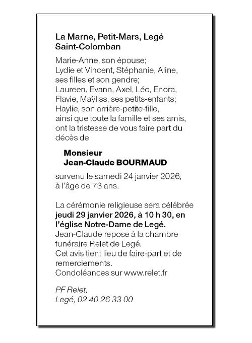 Décédé à Saint-Herblain (44800, France) le samedi 24 janvier 2026 à l'âge de 73 ans