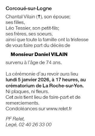 Décédé à Corcoué-sur-Logne (44650, France) le lundi 29 décembre 2025 à l'âge de 74 ans