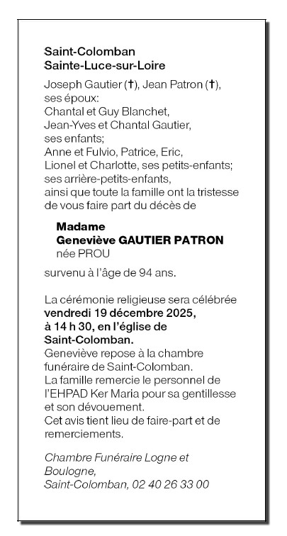 Madame Geneviève PATRON née PROU