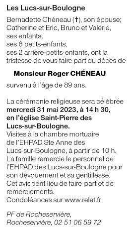 Décédé à La Roche-sur-Yon (85000, France) le samedi 27 mai 2023 à l'âge de 89 ans